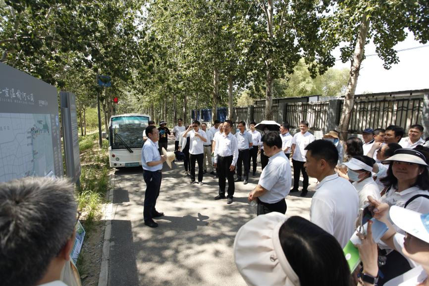 根据主题教育工作安排和集团党委年度计划,当日下午,mk最新网页登录党委书记、董事长霍连明同志带领本部党员,冒着酷暑、顶着烈日,来到主题教育第一批现场教学点——北京温榆河公园朝阳示范区参观学习。